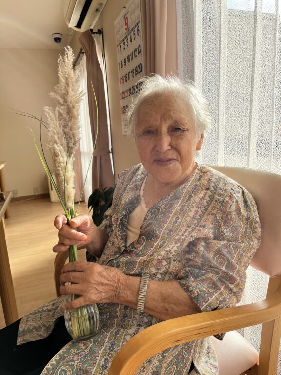 「見たことのないススキだね」「これススキなの?」等、入居者様達は不思議そうに眺めて観賞されていました。
