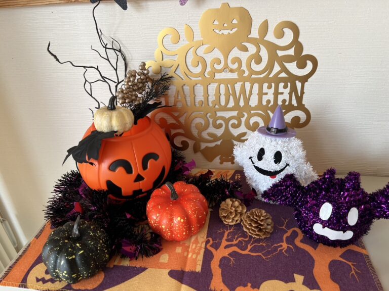 秋にはハロウィンもあり、ことぶきでは玄関にハロウィンの飾り付けを行いました。