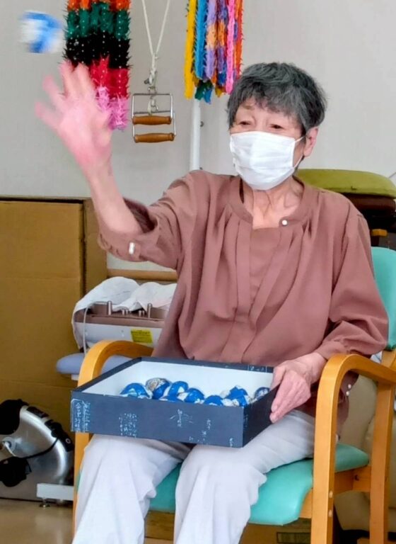 ほとんどの方が、ねらいを定めて命中していて、日頃から練習しているのかなと思えるほど上手でした。玉入れの結果、高得点の成績をおさめ、やったーと喜ぶ笑顔がたくさん見られました。