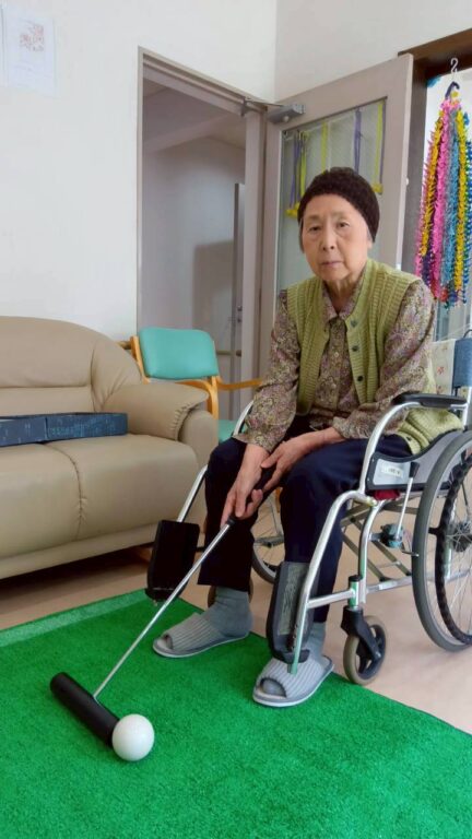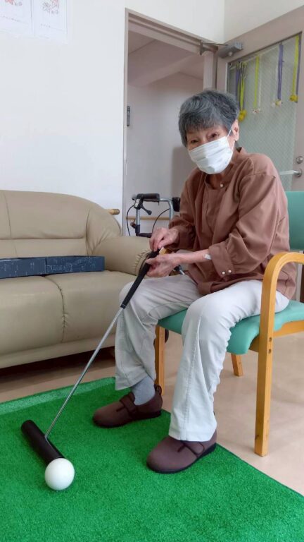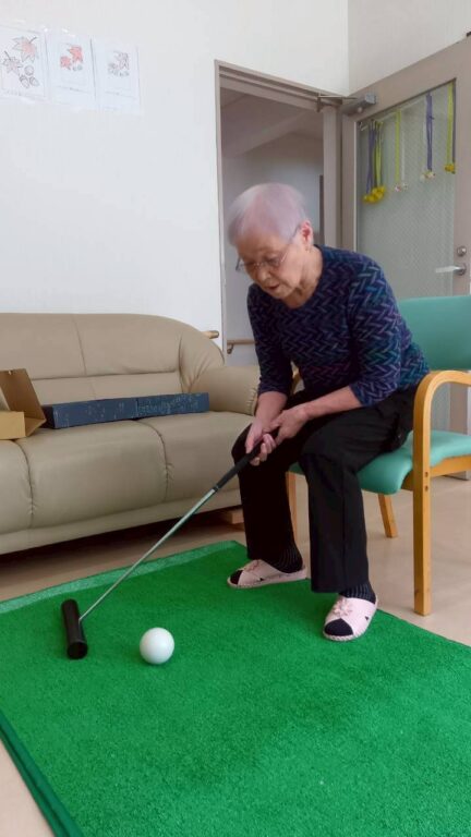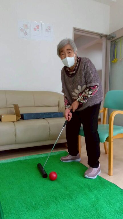 続いての競技はゴルフです。若い頃にゴルフをやってたんだと話すゴルフ経験者もいて、ボールを打つフォームもきれいに決まっていました。やった事がない方も、上手にボールを打っていました。どの方も思い切りが良く、ボールをポーンと打っていました。