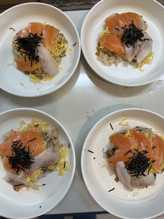 “秋刀魚” “鮭” “カボチャ” “サツマイモ” “栗” など話をしているだけで美味しくなってしまうような秋の味覚がたくさんあげられました。中にはあまり季節とは関係ない “松阪牛” “ラーメン” “みそかんぷら” と言った方もいました(^o^)笑いながらイベント食を楽しむ事が出来ました。