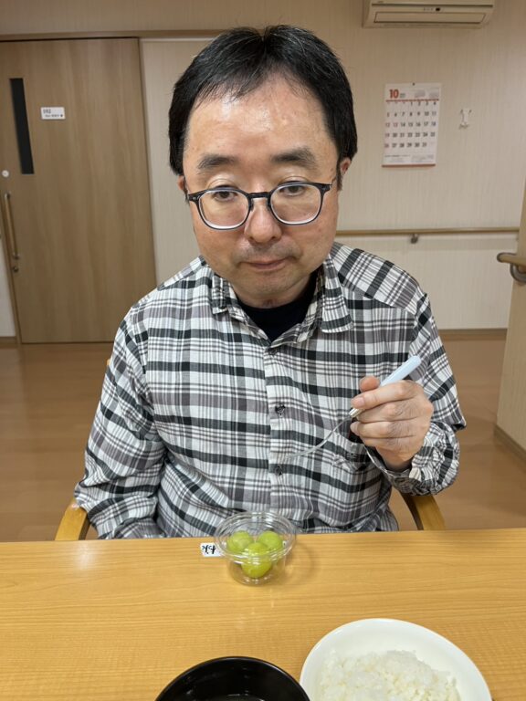 10月のイベント食は梨とシャインマスカットを夕食のデザートに提供しました。