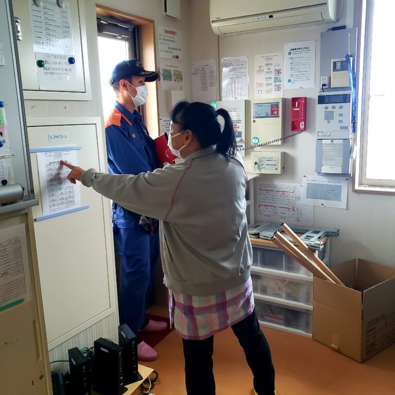 福島県須賀川市にある介護施設シニアホームことぶきで避難訓練がありました