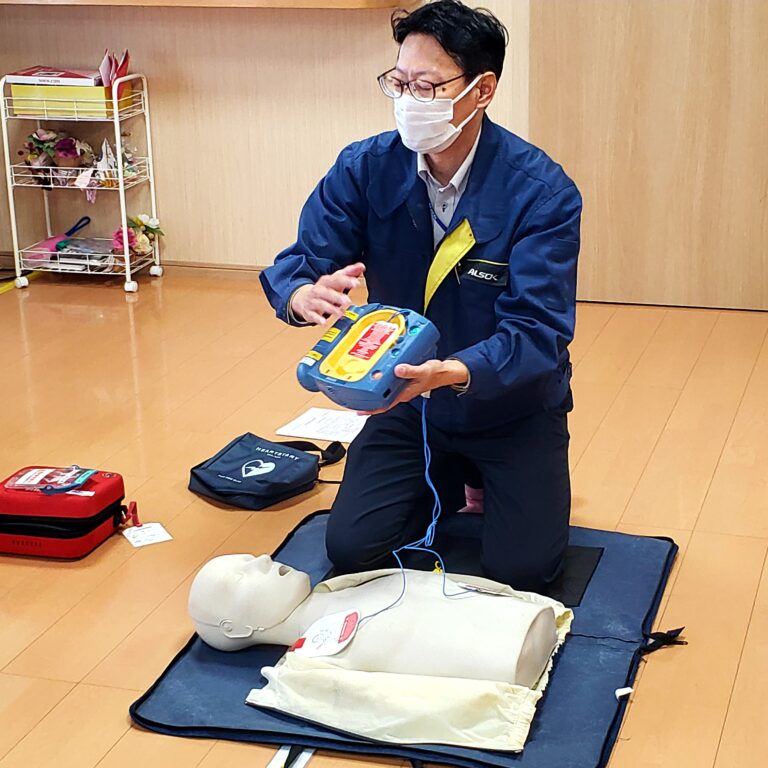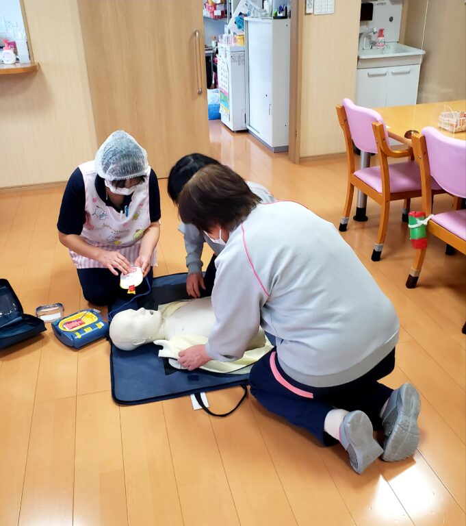 AEDのデモキーを使って、訓練を行いました。