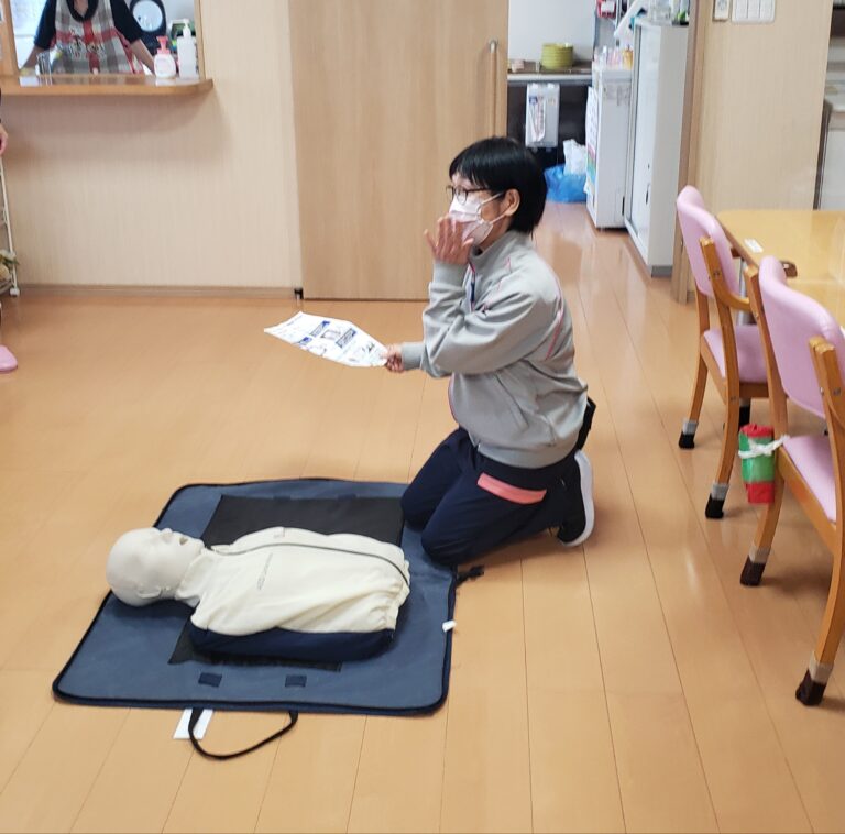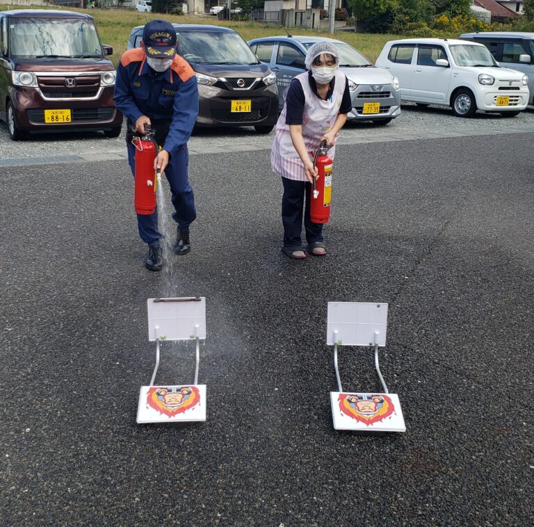 また普段から消化器の場所や避難経路など施設の建物設備を把握しておき、非難時にスタッフが少ない時は119番通報してからどう動くと効率が良いか考えながら行動する事を教えて頂きました。
