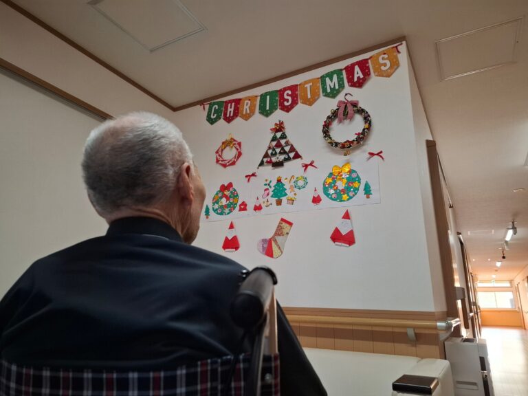 先日、入居者の皆様にご協力いただき、ホーム全体をクリスマスムードに染める飾り付けを行いました。今年も皆様の素晴らしいチームワークと笑顔のおかげで、暖かく、きらめく空間が完成しました!