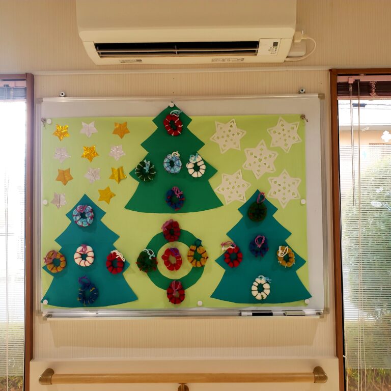 12月に入りクリスマスが近づいてきました。シニアホームせせらぎの建物内に併設されているデイサービスクローバーではクリスマスに向けて色々な活動を行っています。